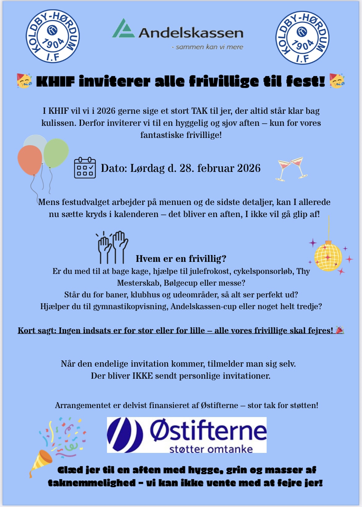 Invitation Frivillighedsfest KHIF 28 februar 2026: