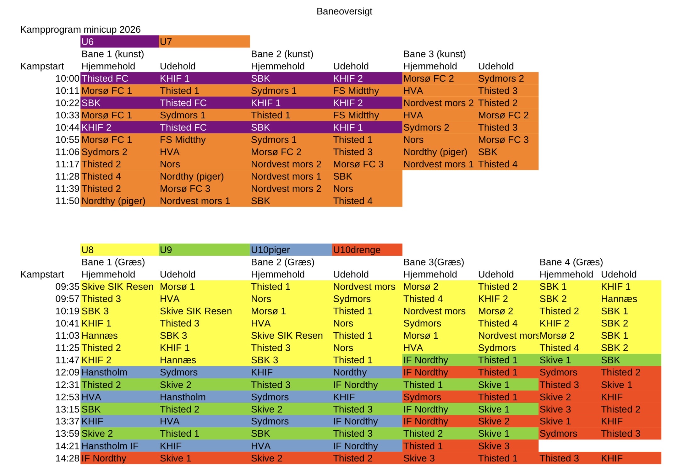 Så er kampprogrammet klar til Koldby MiniCup 2026, programmet ses herunder: